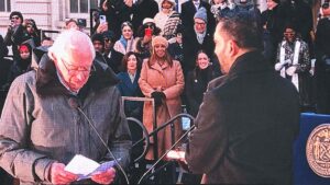 I stand alongside you, the tens of thousands gathered here in Lower Manhattan, warmed against the January chill by the resurgent flame of hope.