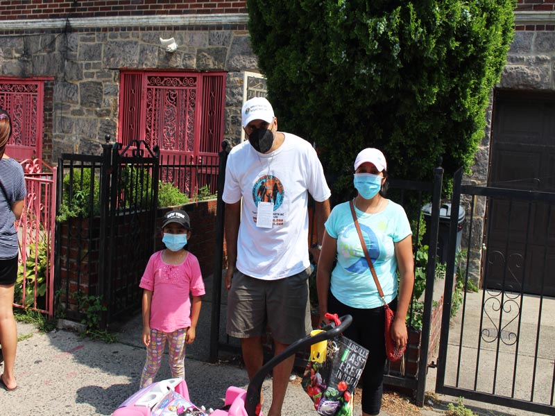 After packing all the bags, alongside our volunteers, we put them in our van and start hitting different locations, throughout New York City, Queens, Bronx, and Brooklyn. Each one of our volunteers are wearing a mask, a shield over the mask , alongside a pair of rubber gloves, to keep them safe, while distributing the bags to many people, also 6ft social distancing is an must, for everybody’s safety, each volunteer is given a 30 minute course in this COVID-19 pandemic.