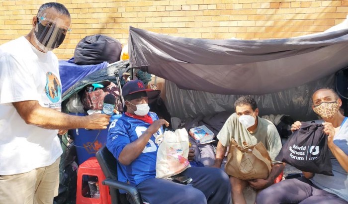 Dr Abbey giving bags to 3 Homeless Individuals living on the streets