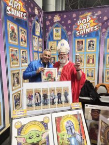 Pop Art Saints, By John Säuferling: John Säuferlingis the founder of the art project known as Pop Art Saints. The project, also promoted under the name Omakase Ltd., sells prints of pop art-style paintings that depict various celebrities, pop culture figures, and historical icons as religious saints. The subjects of his “saint” portraits include a wide variety of figures, from pop culture icons like Nicolas Cage and Paul McCartney to figures from fictional works like Ahsoka Tano and Paul Atreides.