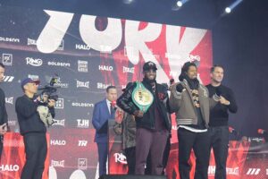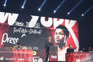 This is a joy as I said to the fighters earlier on the undercard…understand what you’re fighting for on Saturday night. Memories. Top to bottom, the whole boxing world will be in New York on Saturday night. You’ve got the Ring Magazine Awards tomorrow night, live on DAZN around the world. Thank you to both men. This is exactly what boxing needs, and I cannot wait. “
